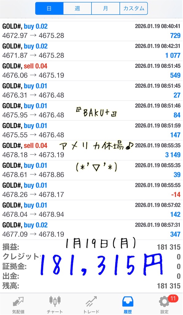 お昼の穏やか~な値動きのときだけ動かしても毎日1万円以上の利益が見込めます♪